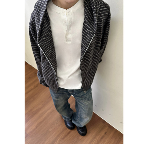 Abrigo de invierno de punto con costuras de peso pesado vintage con logotipo personalizado, chaquetas con cuello vuelto y forro grueso, chaqueta azul marino para hombre de calle