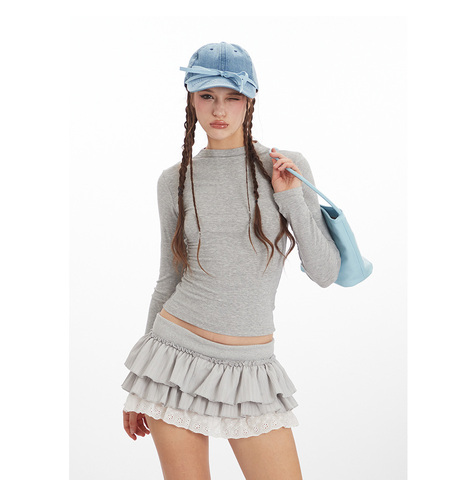 Camiseta informal ajustada de manga larga con cuello redondo de algodón 100% para mujer, blusa pulóver para mujer, blusa informal de fondo sólido para mujer