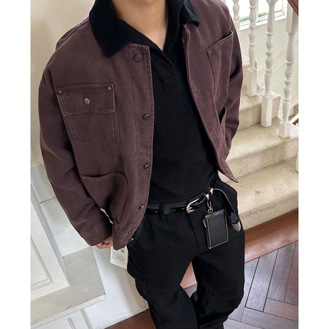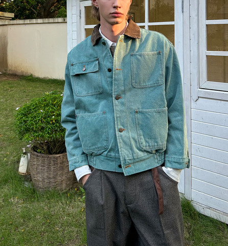 Chaqueta de trabajo de lona lavada con ácido de peso pesado personalizada, chaqueta de bombardero para trabajadores de camionero de moda para hombres