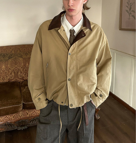Abrigo de invierno para hombre, ropa de trabajo, estilo Punk Retro, cierre de cremallera, primavera Otoño, estilo de montaña, lona suelta de retazos con bloqueo de Color
