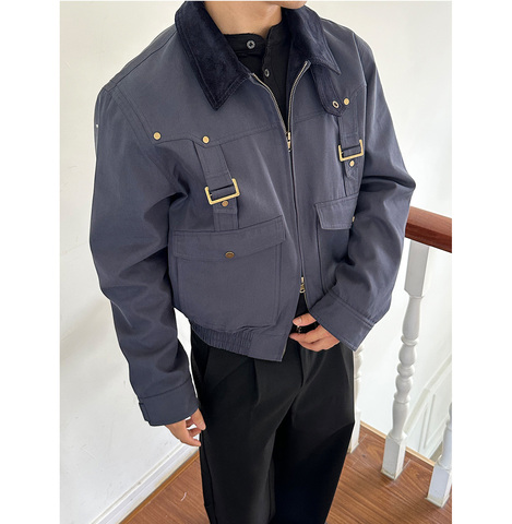 Abrigo de invierno para hombre, ropa de trabajo, estilo Punk Retro, cierre de cremallera, primavera Otoño, estilo de montaña, lona de retazos suelta, bloqueo de Color